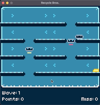 You play as two robot brothers, Pink and Yellow tasked with sending incoming recyclables to their next location... wherever that may be, and collecting points along the way. You are given only 3 misses before your boss shuts you down and labels you as a recyclable.